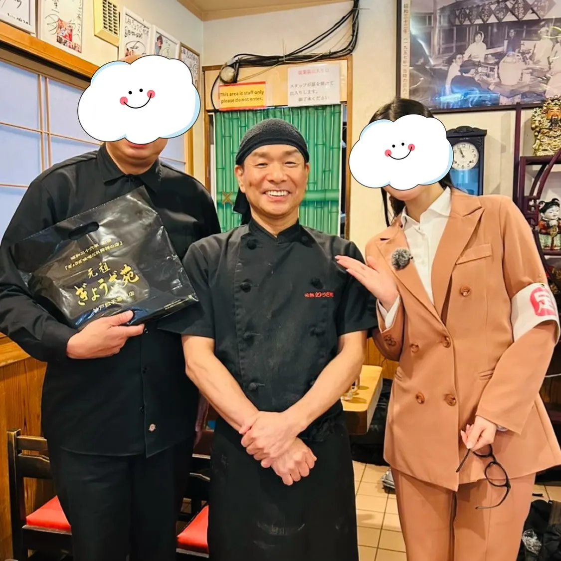餃子評論家様と女性アナウンサー様が、ご来店され「味噌ダレ」と「神戸ビーフ入り餃子」を取材してくださいました🥟